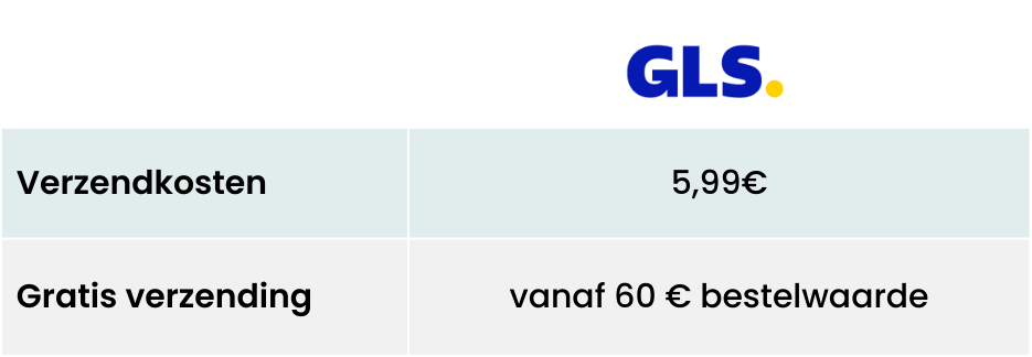 Zoals je waarschijnlijk al weet, zijn de standaard verzendkosten bij een bestelling vanaf €60 gratis. Onder dat bedrag, zijn de verzendkosten €6,99.