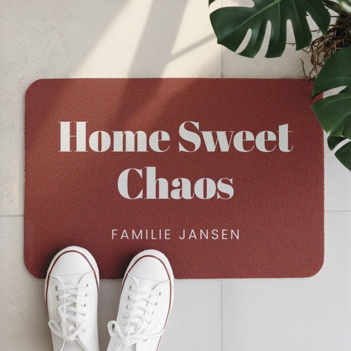 Drie regels. Eindeloos veel mogelijkheden. Onze gepersonaliseerde deurmat brengt jouw boodschap direct bij de voordeur – of die nu grappig, liefdevol of compleet gek is. Jij kiest de tekst, het lettertype, de kleur en zelfs de achtergrond van de mat.