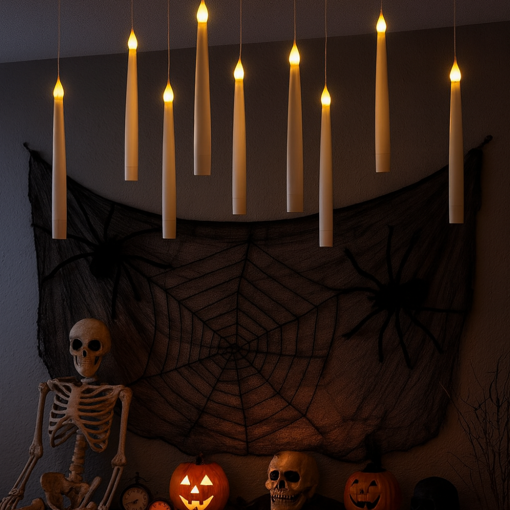 Deze kaarsen hebben geen kandelaar nodig… ze zweven gewoon! Met doorzichtige nylondraad en bijpassende plakhaakjes tover je in een handomdraai lichtgevende kaarsen de lucht in. Het warme LED-knipperen zorgt voor gezellig kaarslicht, helemaal zonder vuur, rook of was.